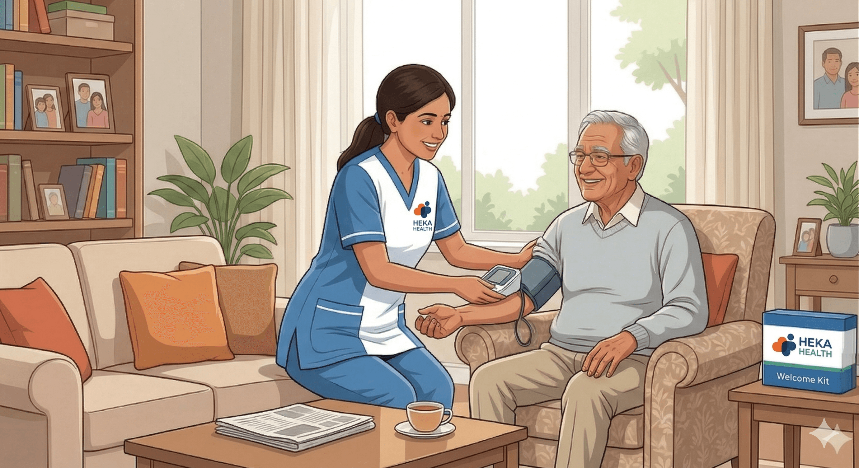 At Heka Health, we believe care should feel like family. Our approach is built on 'Heartfelt Trust' and 'Expert Hands.' We ensure this through a rigorous vetting process for all our caregivers, who are chosen for both their skills and their compassion.